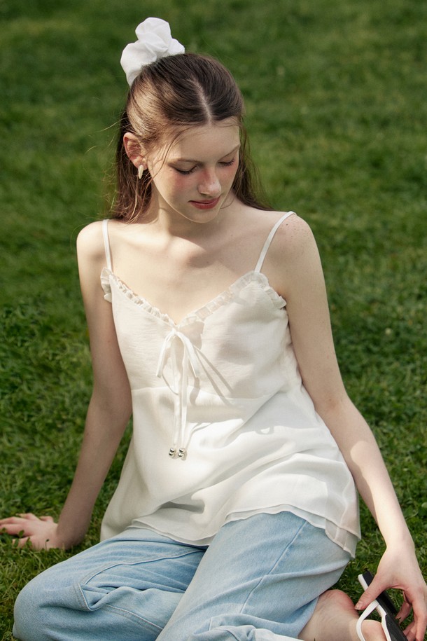 Frill v neck chiffon double bustier - ivory