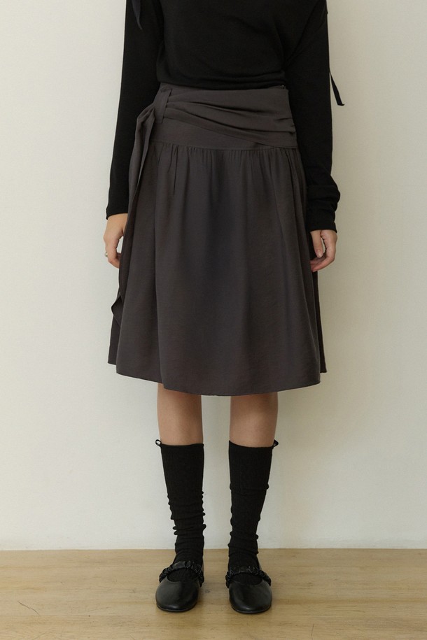 Belt point shirring midi skirt - charcoal