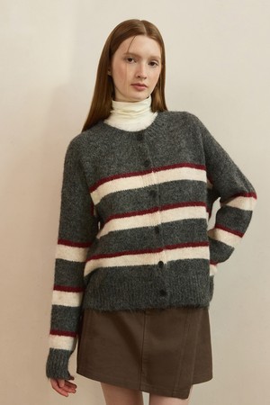 Mix stripe round neck cardigan - 3color