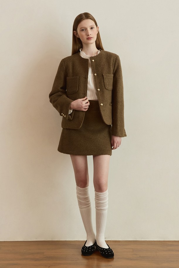 Teddy boucle tweed jacket - brown