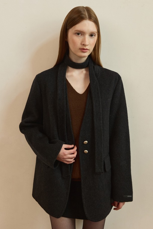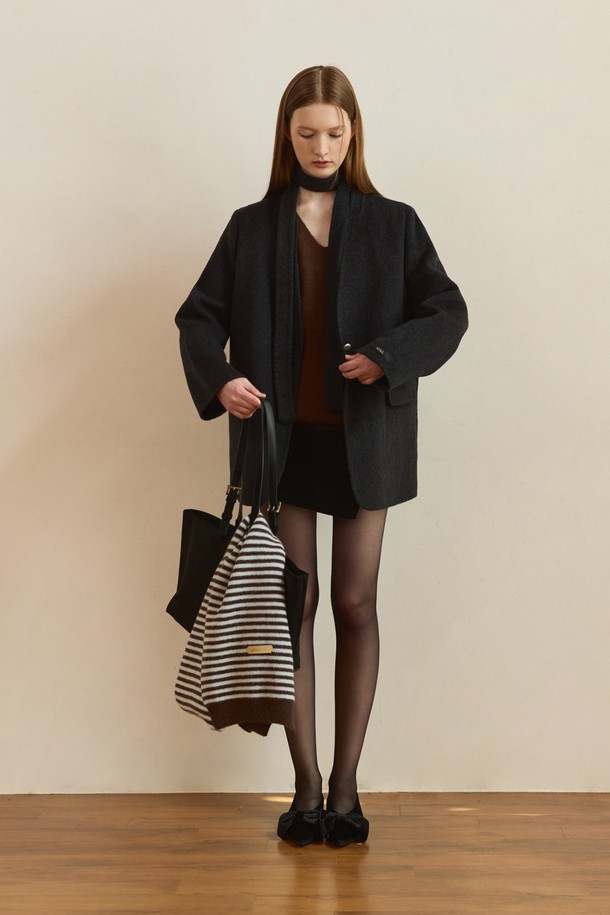 Pebble button handmade wool jacket - charcoal