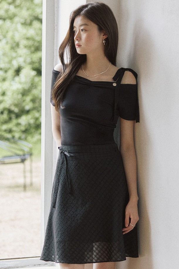 Oblique check ribbon midi skirt - black