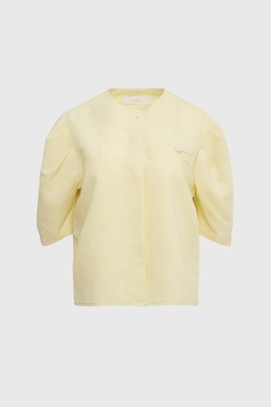 Lip pocket puff sleeve blouse - yellow