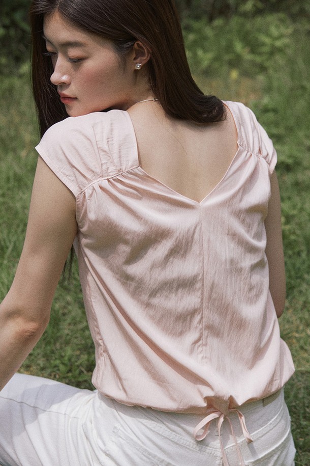 Puff shirring sleeveless blouse - coral pink