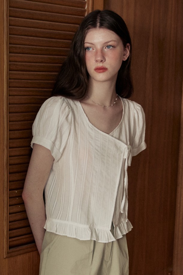 Jacquard lap frill blouse - white