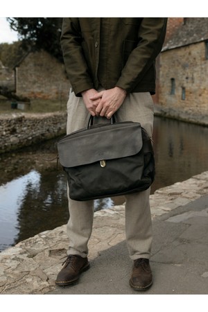 블루드쇼프 제포 솔로 브리프케이스 왁스캔버스 - 카키