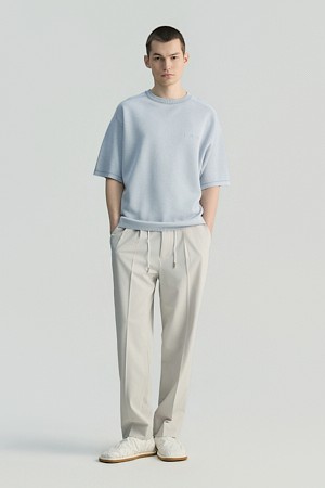 Raccord 반팔 강연 자수 배색 라운드넥 스웨터