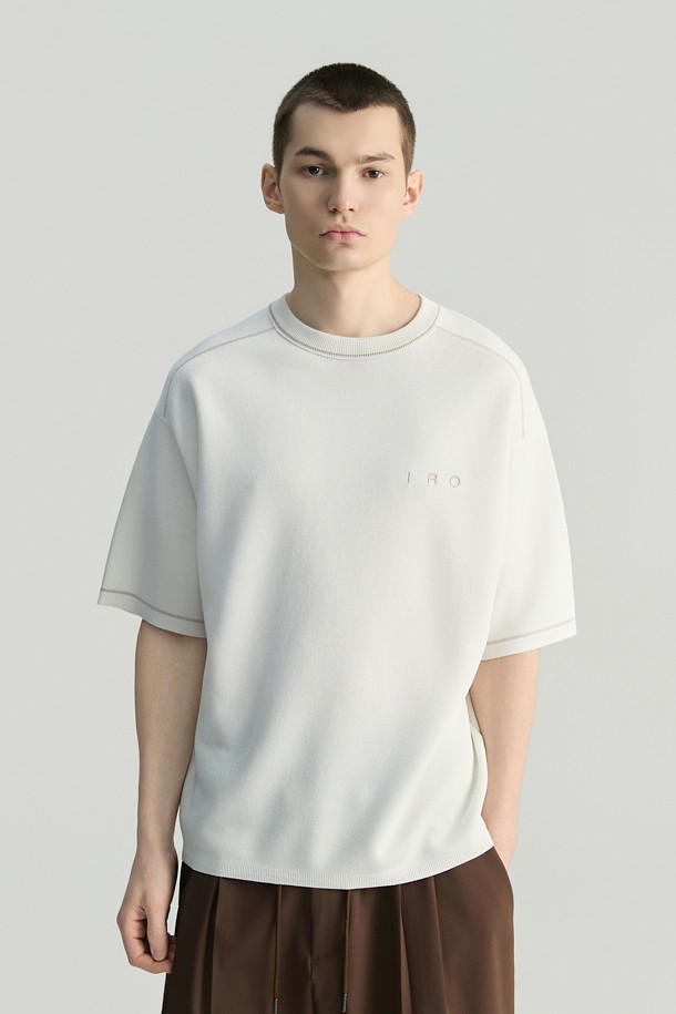 Raccord 반팔 강연 자수 배색 라운드넥 스웨터