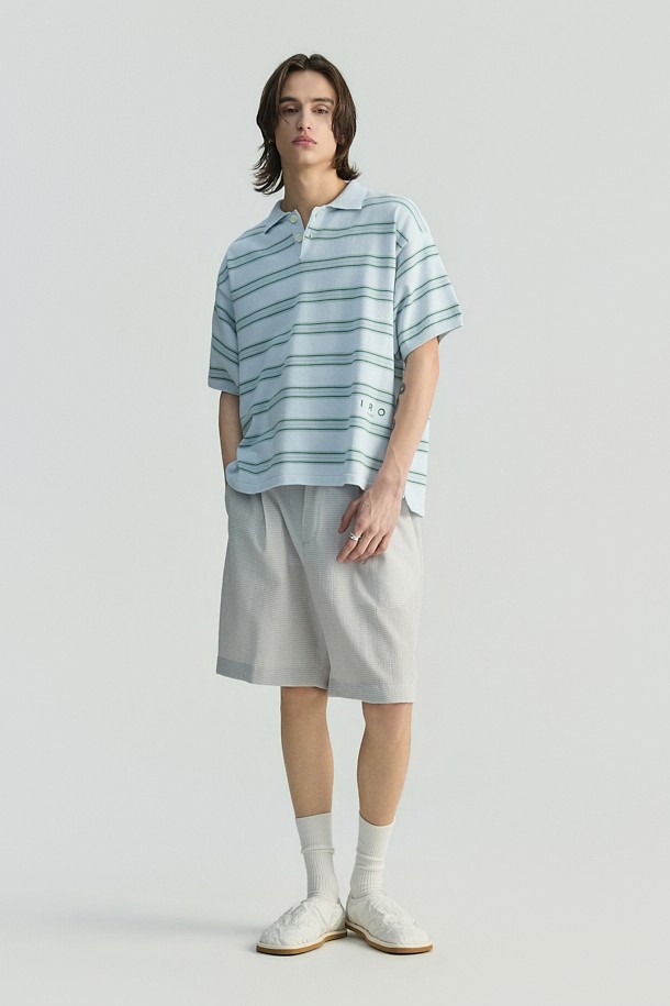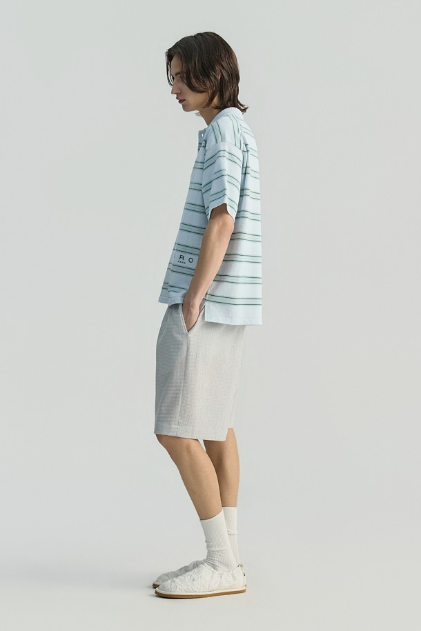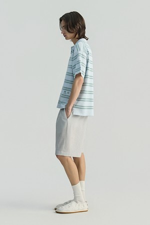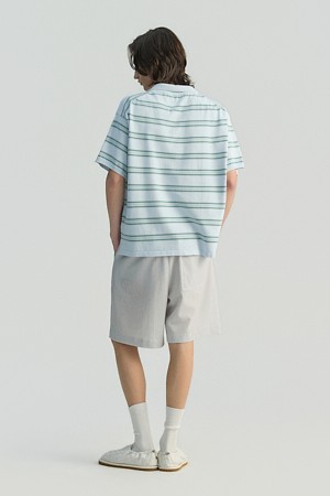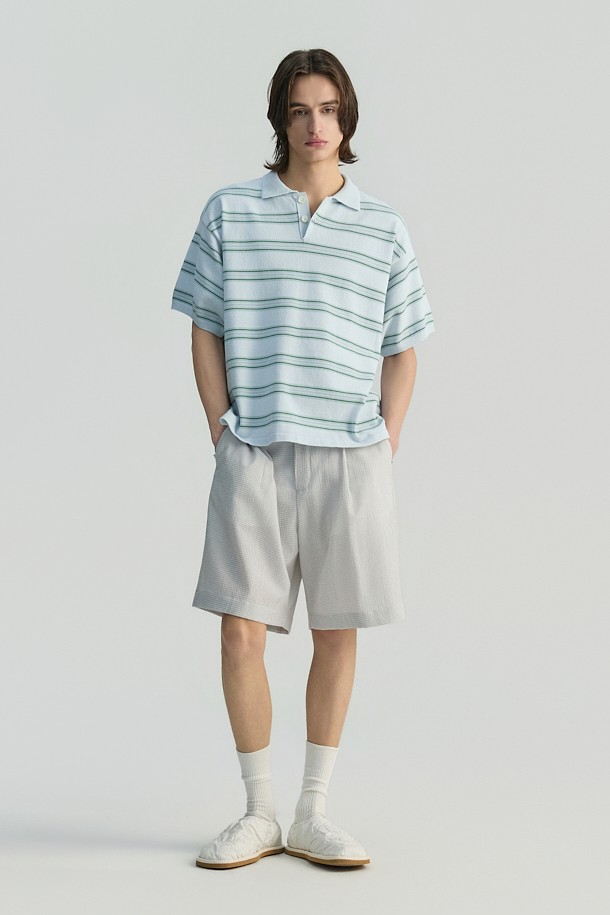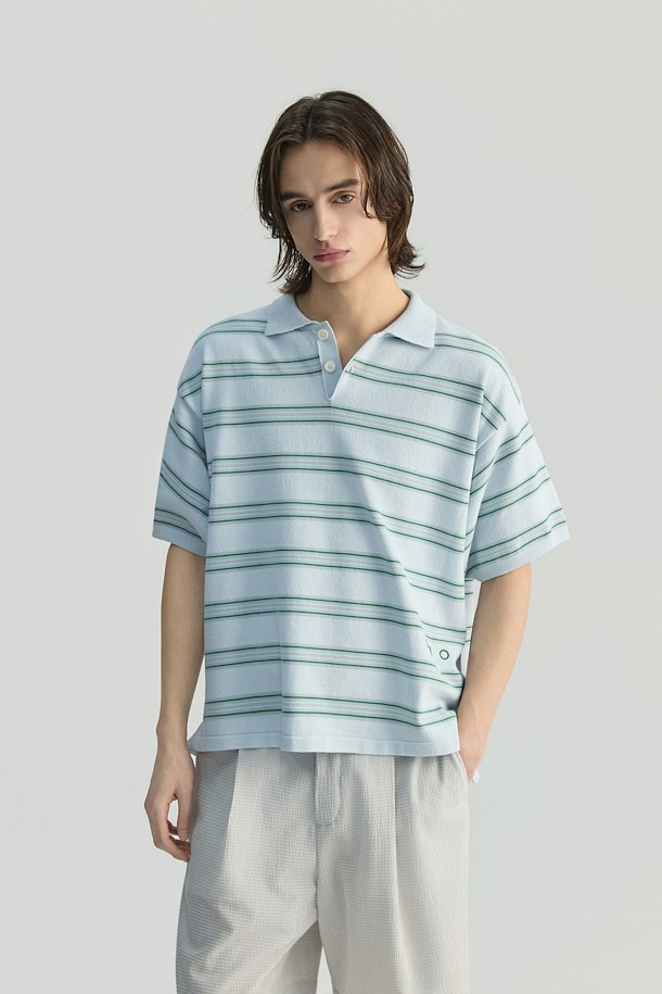 Maree 카라 스트라이프 테리 반팔 스웨터