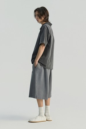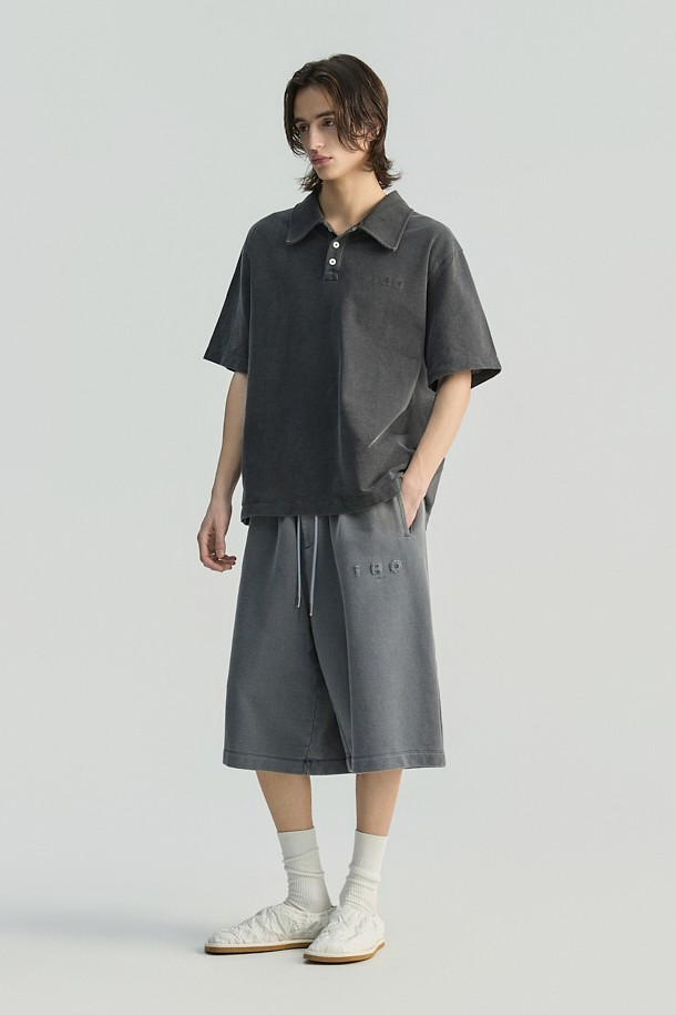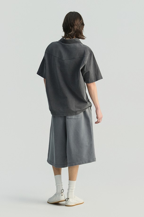JARETH 데님 텍스쳐 버튼 카라 숏 슬리브 티셔츠