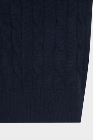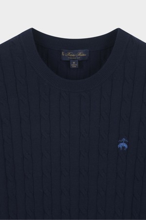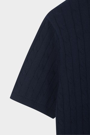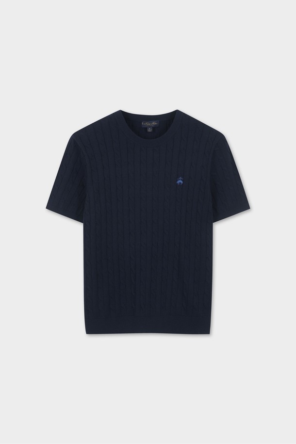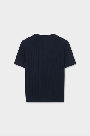 코튼 케이블 크루넥 반팔 스웨터 (다크네이비) (BBWRMBZ203)
