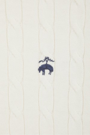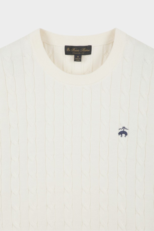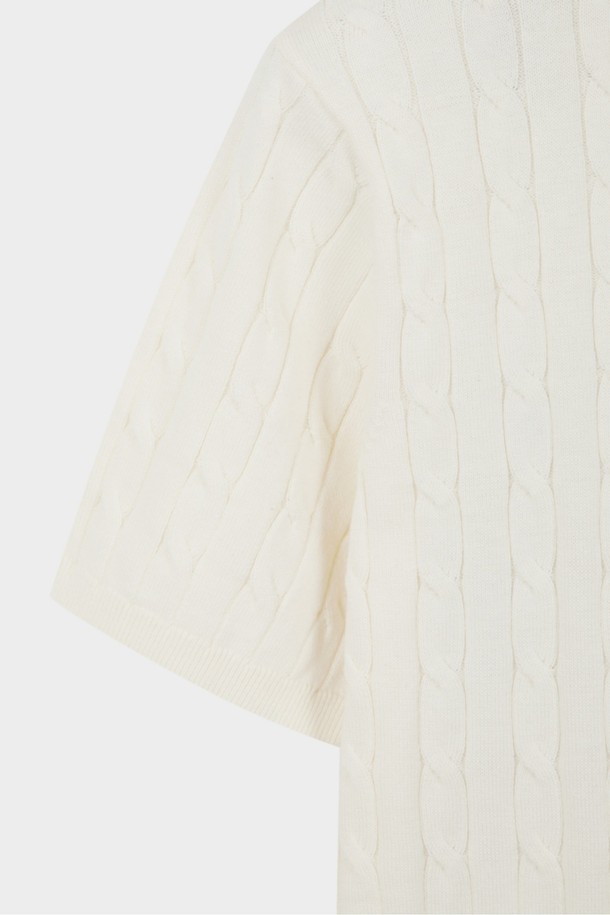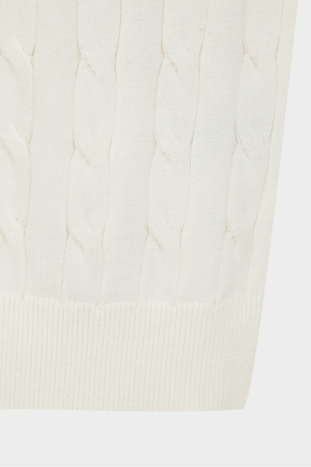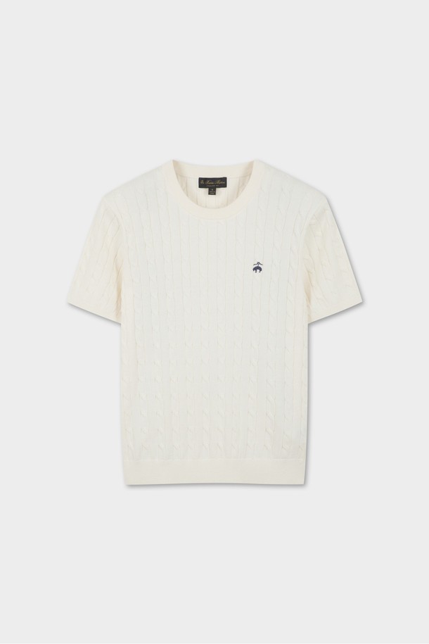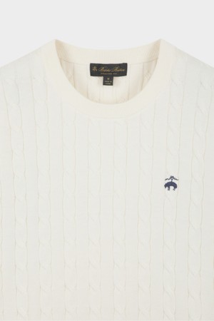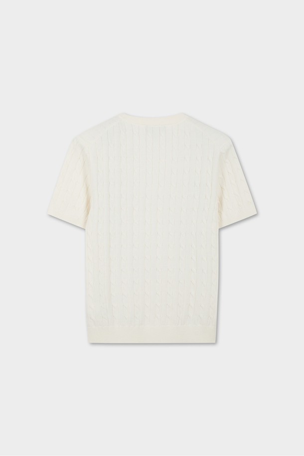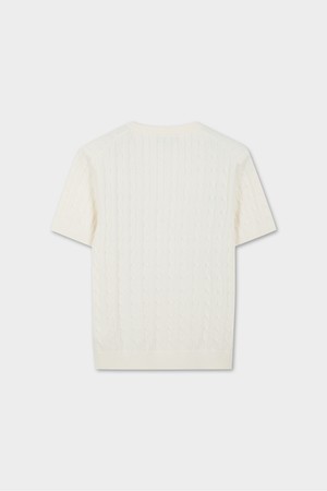 코튼 케이블 크루넥 반팔 스웨터 (화이트) (BBWRMBZ203)