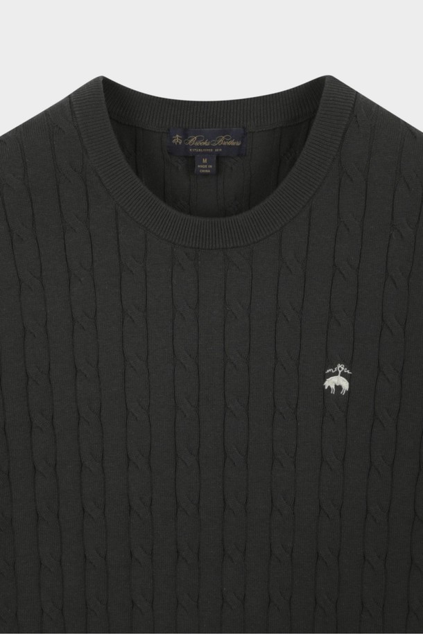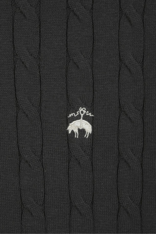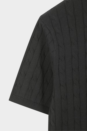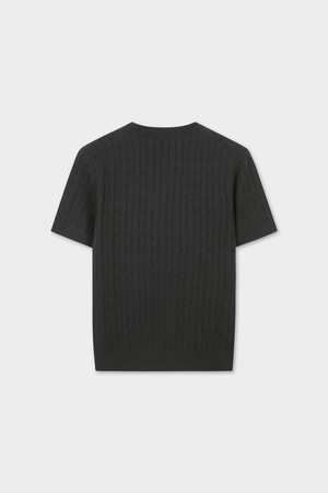코튼 케이블 크루넥 반팔 스웨터 (차콜) (BBWRMBZ203)