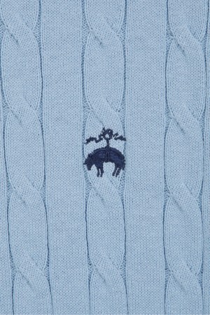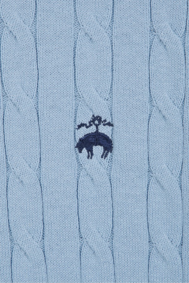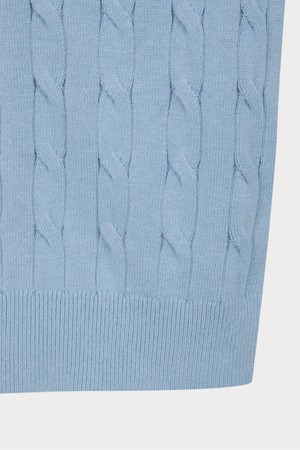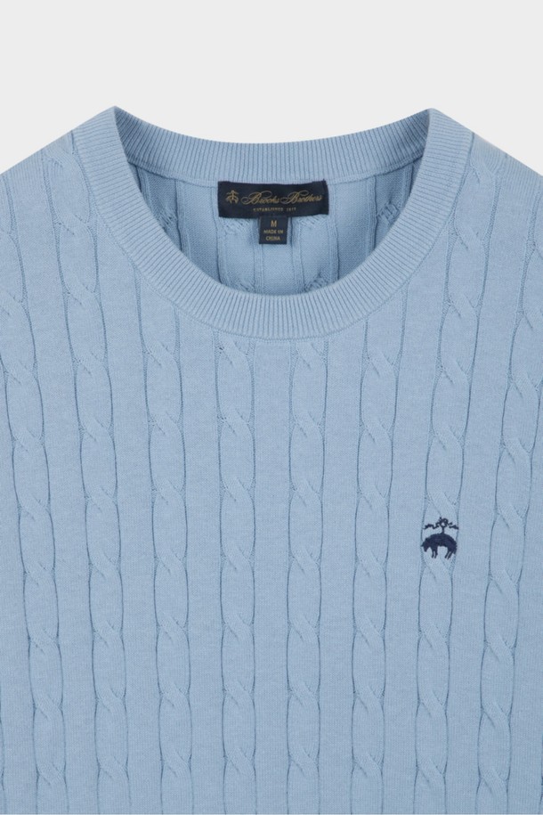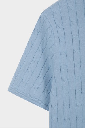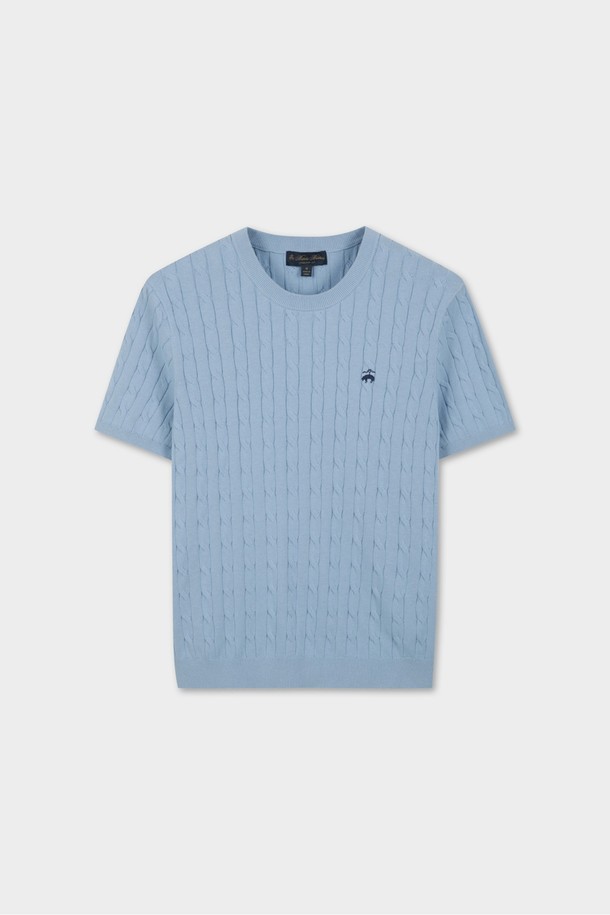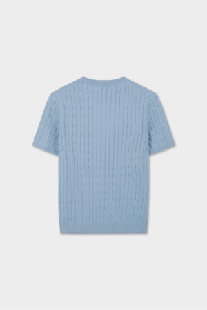 코튼 케이블 크루넥 반팔 스웨터 (라이트블루) (BBWRMBZ203)