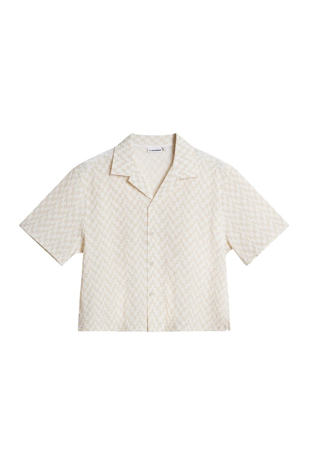 제이린드버그 SS26 여성 리브 링클 골프 셔츠 문빔 BWST15130