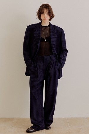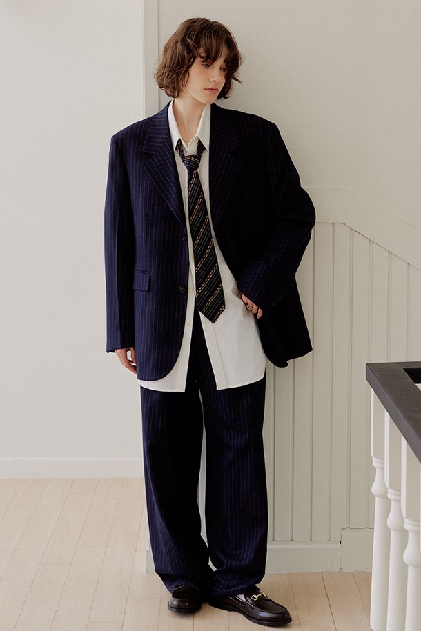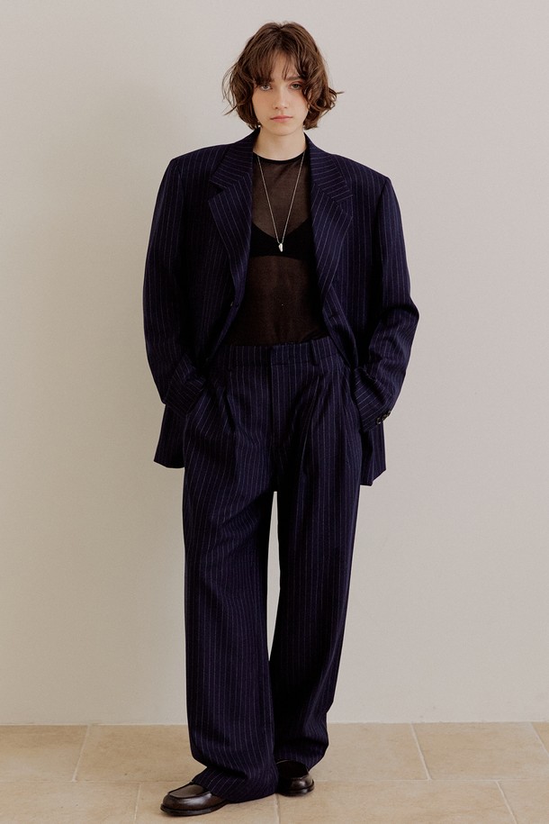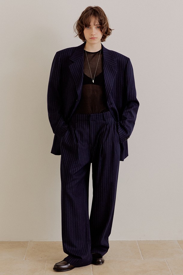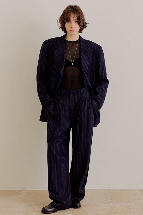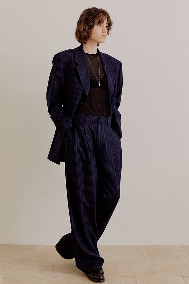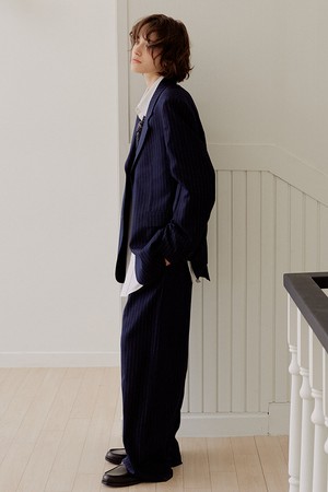 핀스트라이프 오버핏 울 팬츠 [네이비]