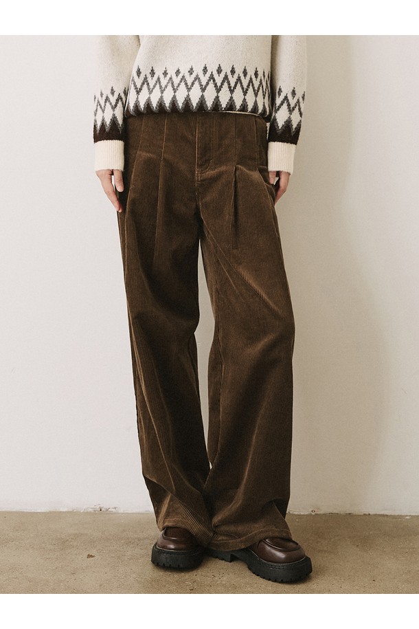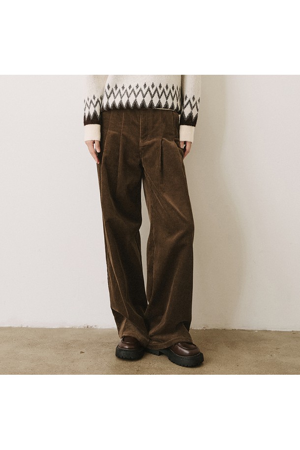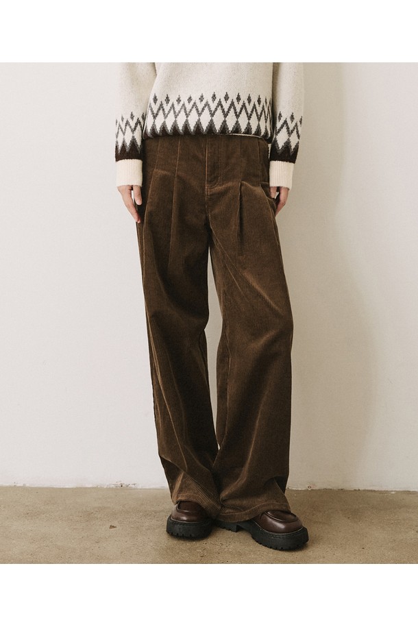 코듀로이 투턱 와이드 팬츠 [브라운]