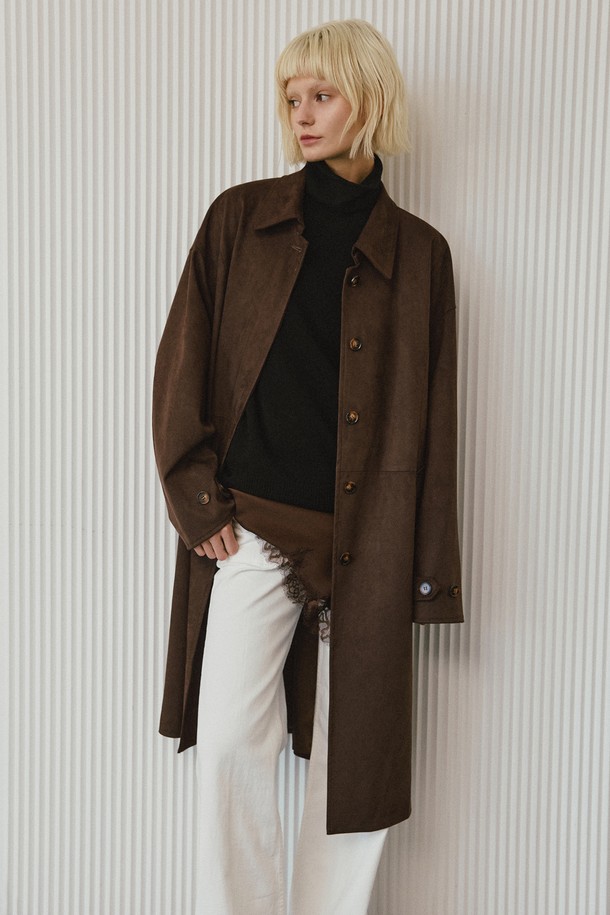 신세틱 스웨이드 싱글 맥 코트 [다크브라운]