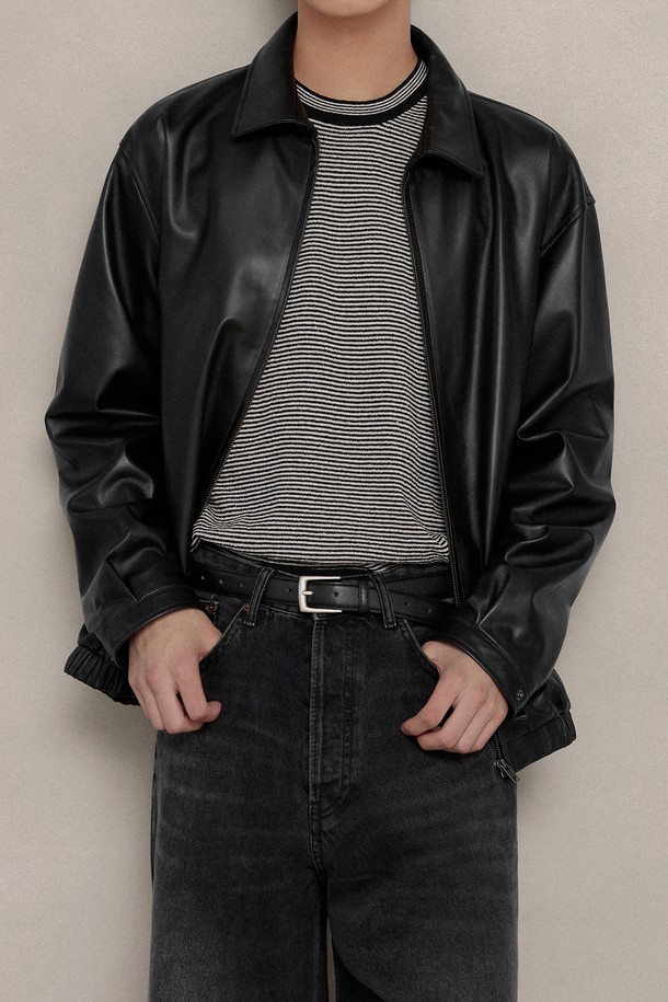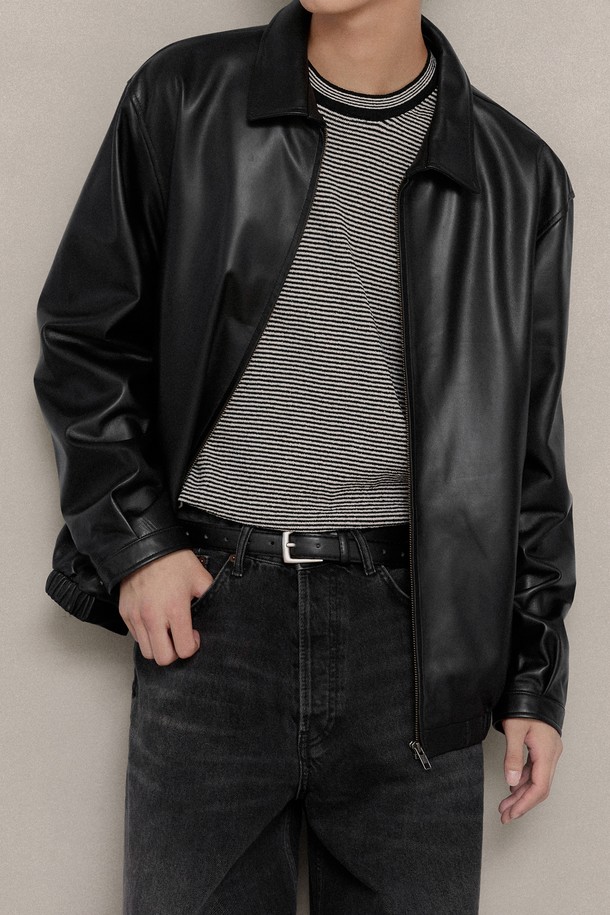 맨즈 카우레더 스퀘어 벨트 [블랙]