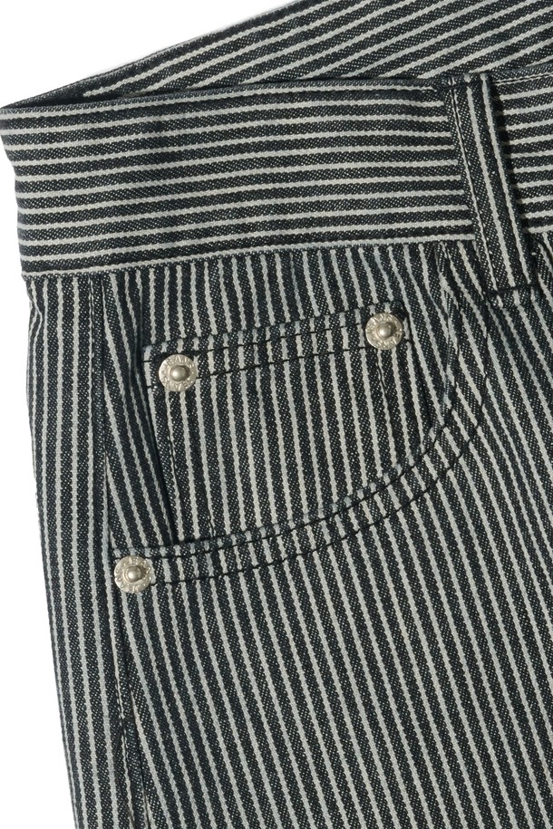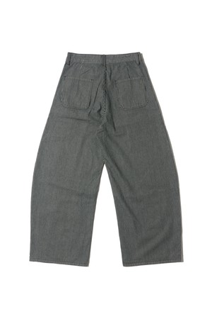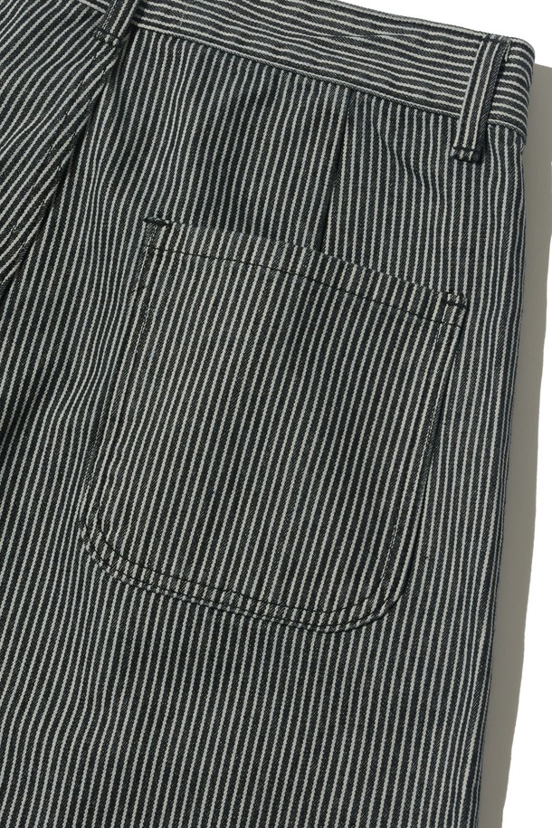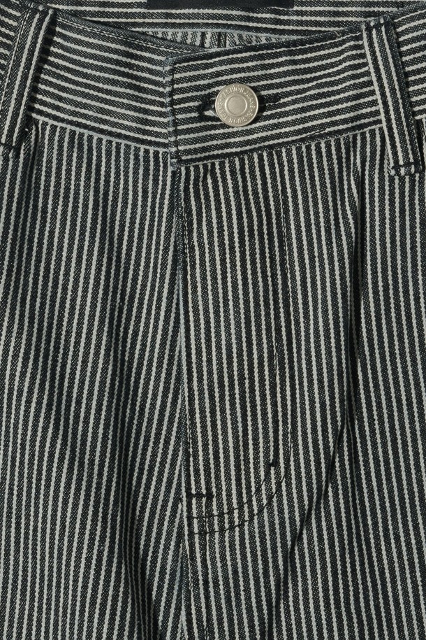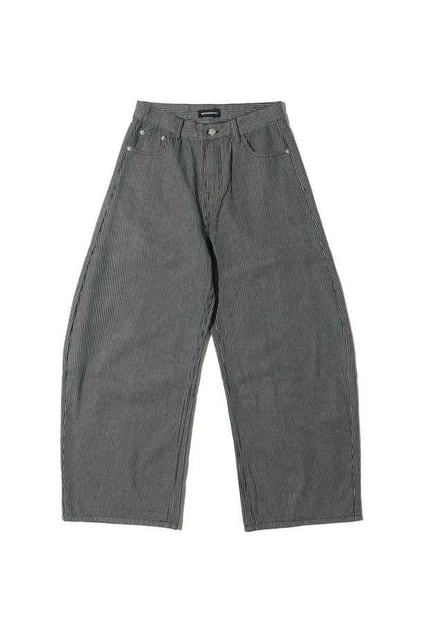 스트라이프 세미 와이드 벌룬 팬츠 (블랙)