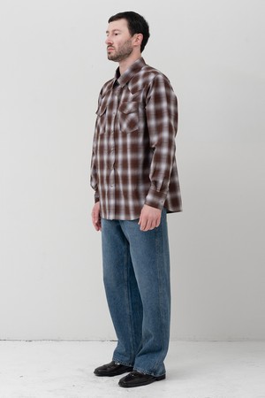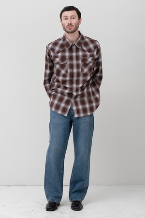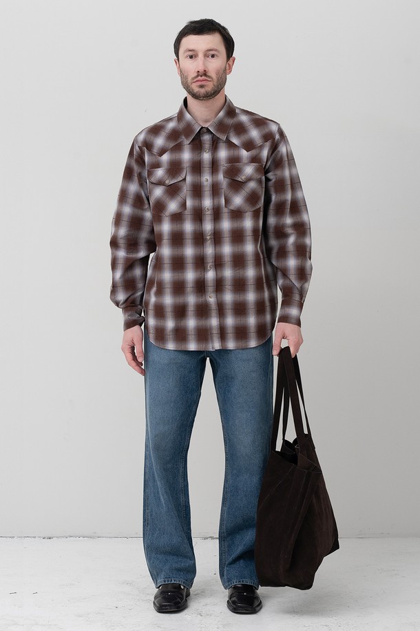 [GAGEYAMA 일본 수입원단] 윈도우페인 옴브레 릴렉스드 셔츠