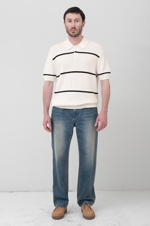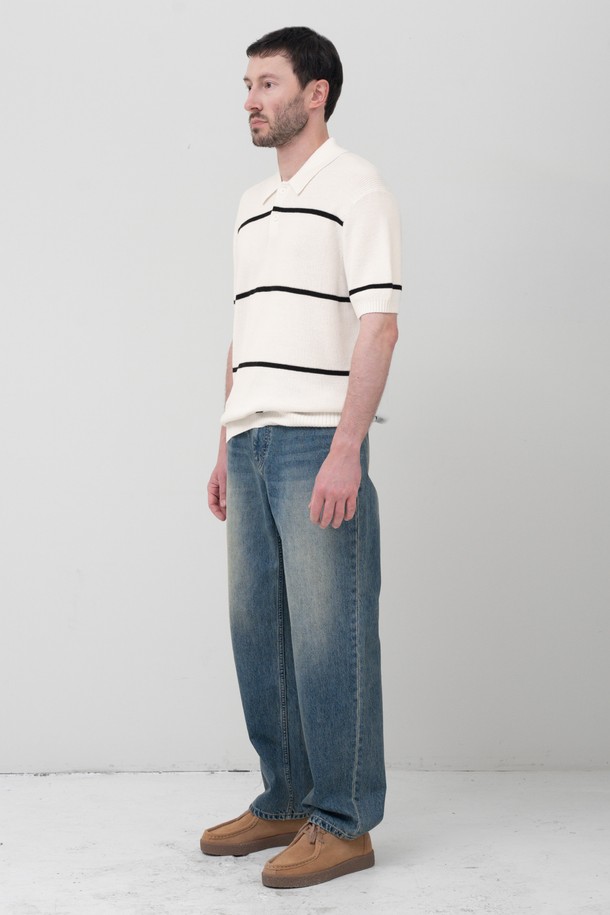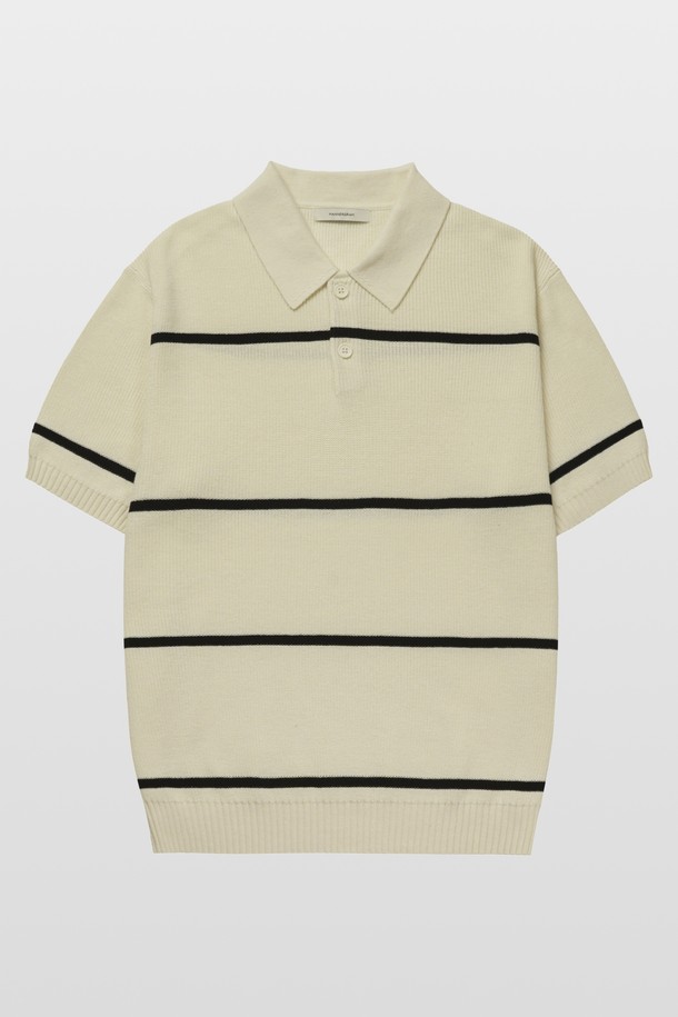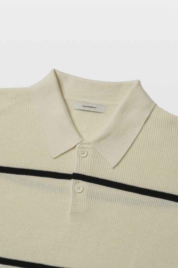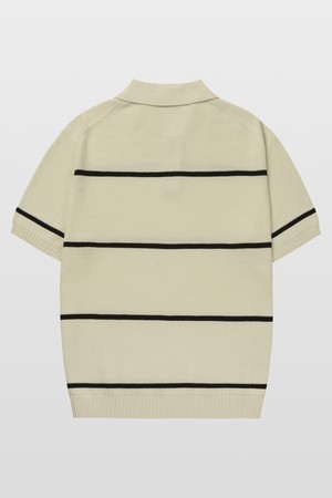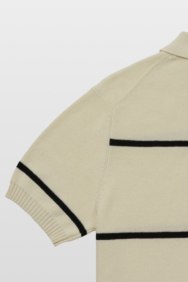 텍스쳐드 스트라이프 코튼100 폴로 반팔니트 크림