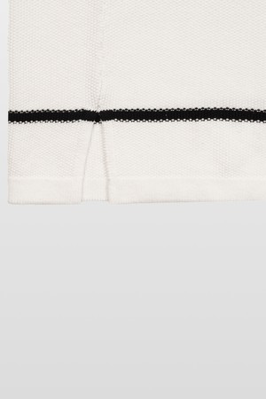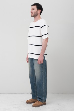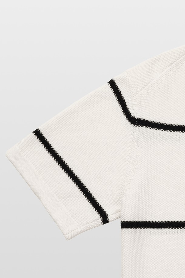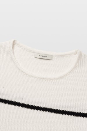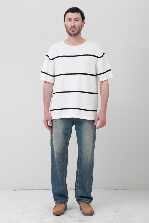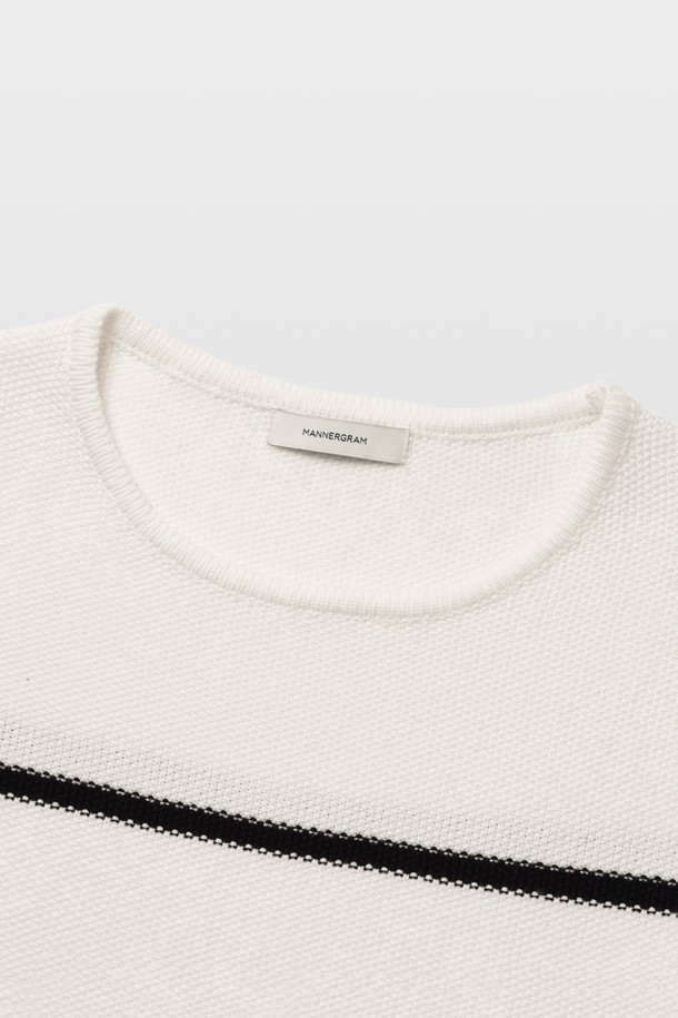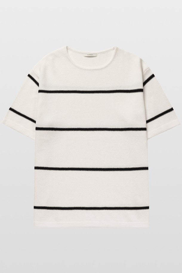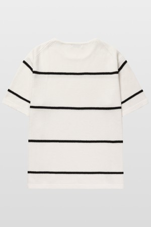 스트라이프 보트넥 코튼100 반팔니트 화이트