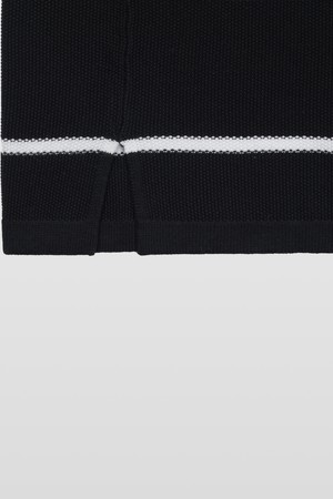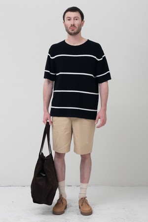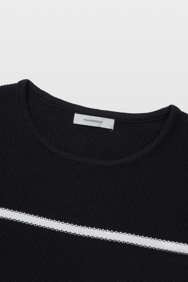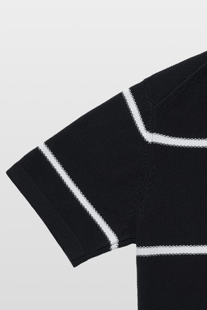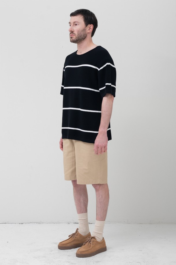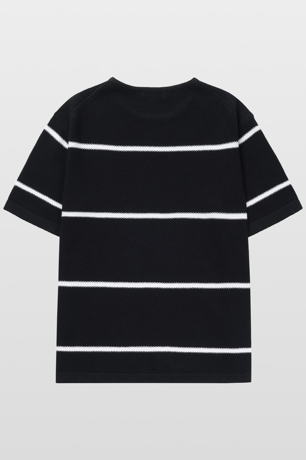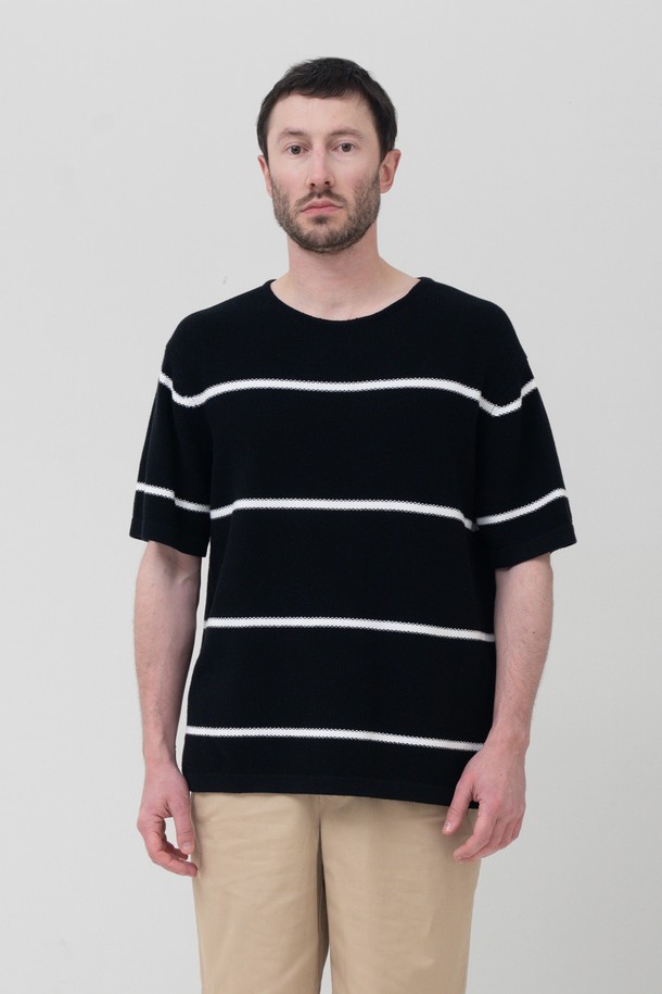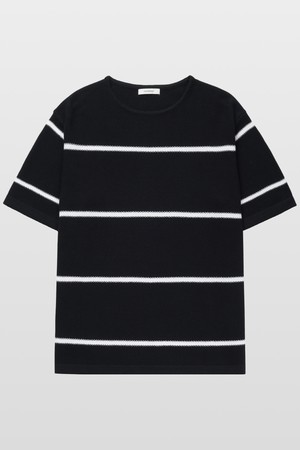 스트라이프 보트넥 코튼100 반팔니트 블랙