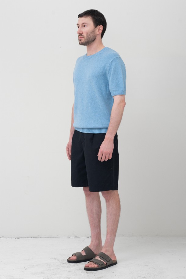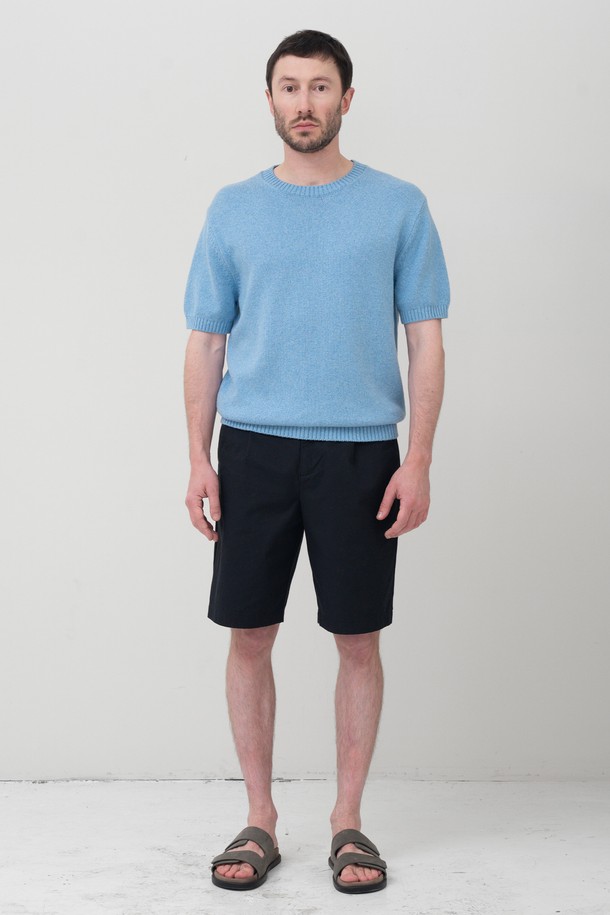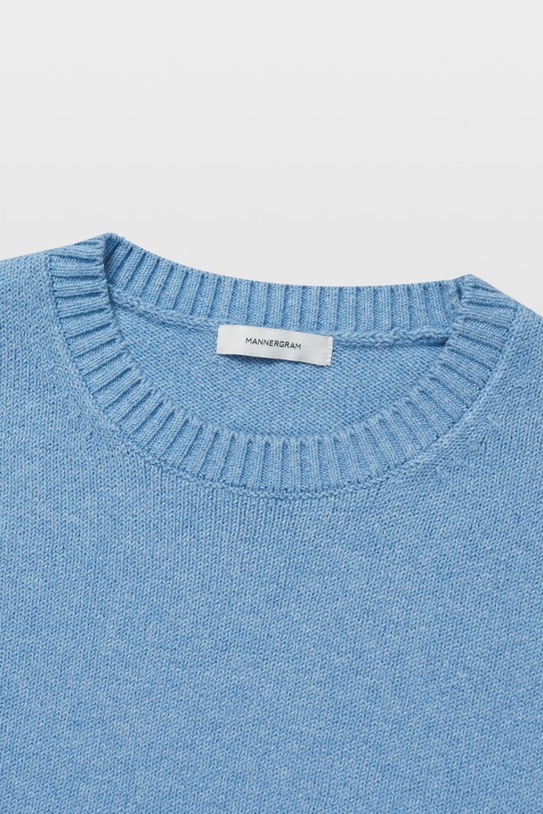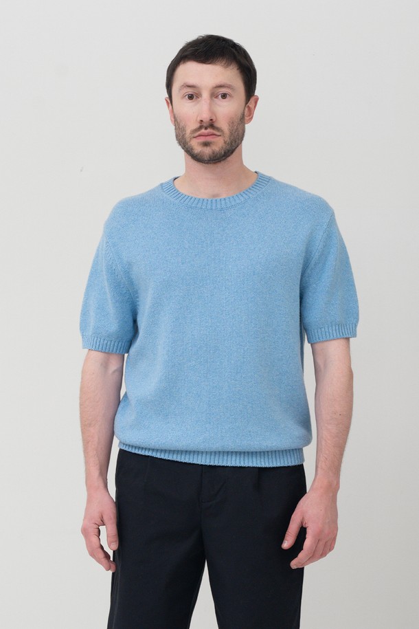 UPW 워셔블코튼 라운드 반팔니트 카메오 블루