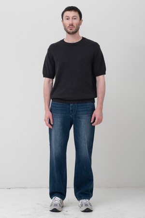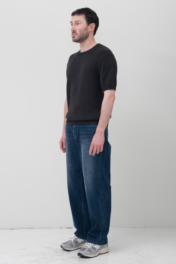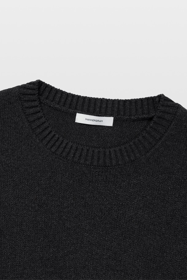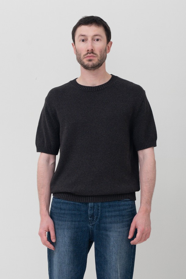 UPW 워셔블코튼 라운드 반팔니트 다크 그레이
