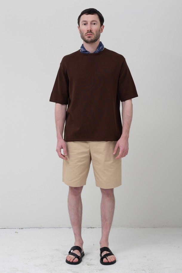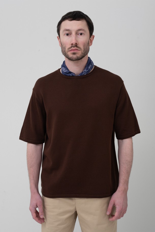 소프트코튼100 롤링엣지 라운드 반팔니트 브라운