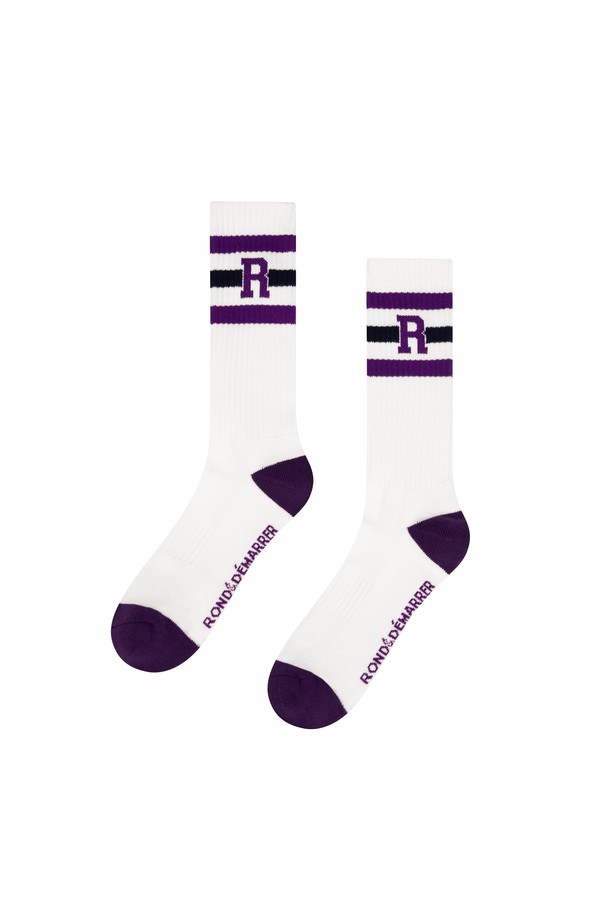 [남녀공용] 컬러블록 R자수 장목 양말 (퍼플)