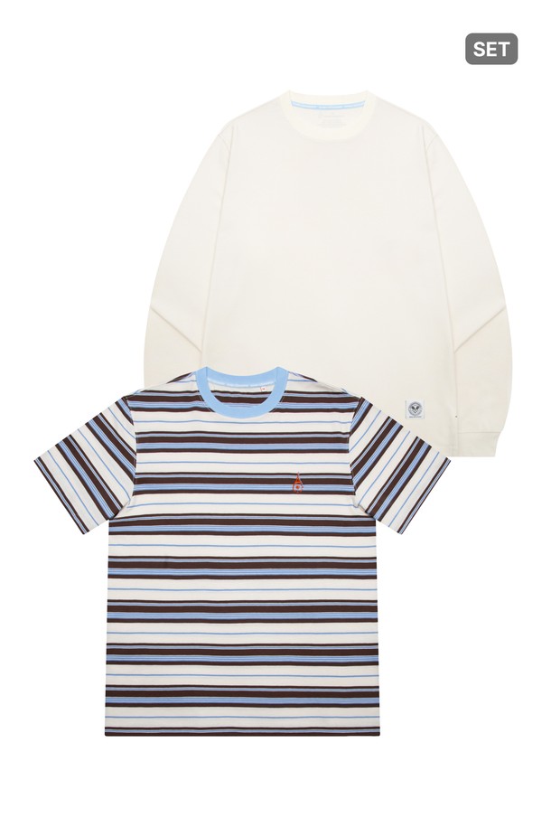 [남녀공용] 멀티 스트라이프 레이어드 롱슬리브 티셔츠 세트