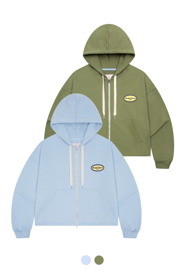 [남녀공용] 로고 와펜 크롭 후드 집업