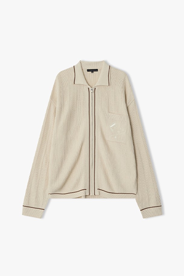 [26SS] LMS51706 베이지 자수 포켓 집업 가디건