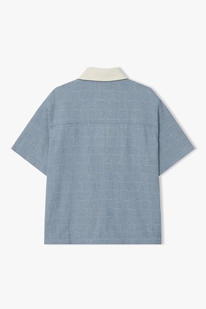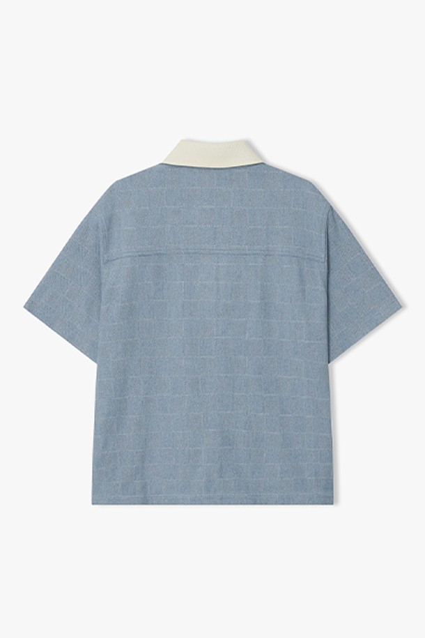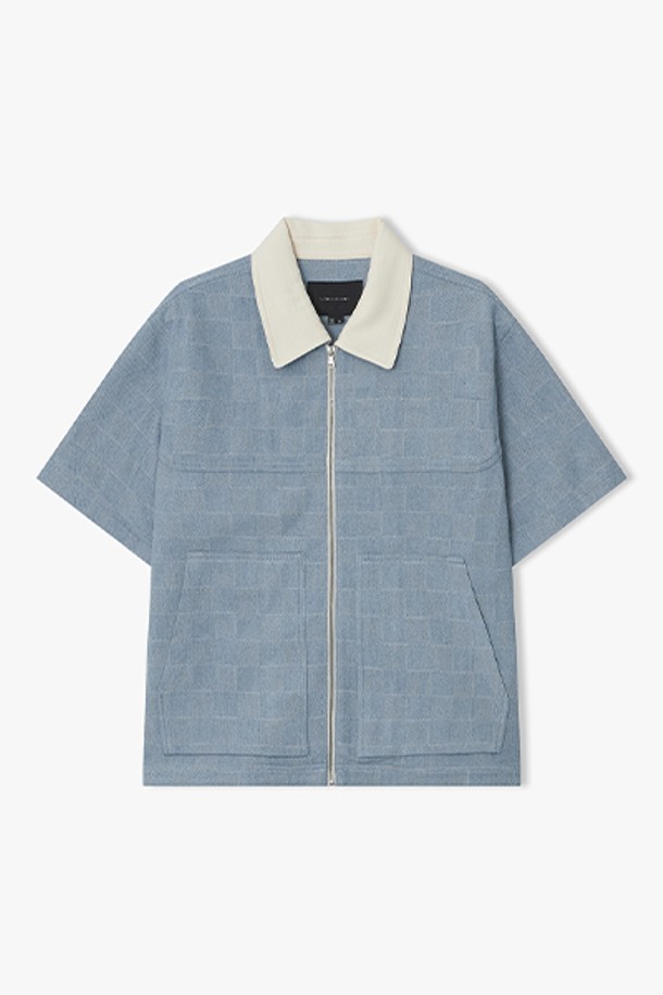 [26SS] LMM32705 라이트블루 컬러리브 체크 데님 하프 셔켓