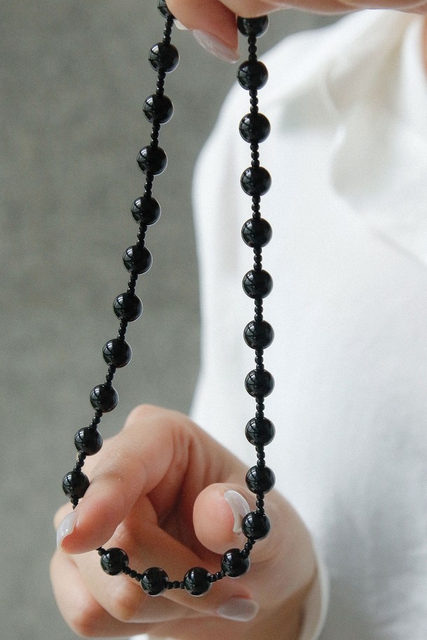 8mm 오닉스 원석 실버 목걸이 Bn0574