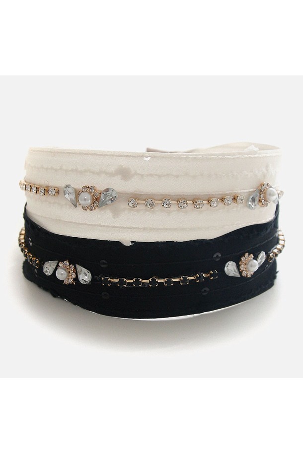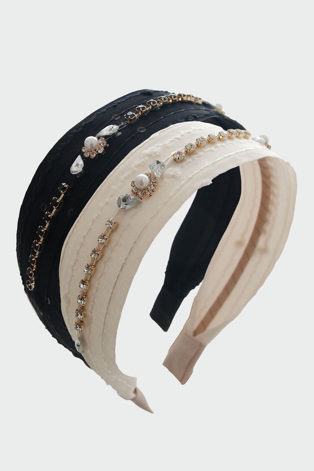 큐빅 레이스 와이드 패브릭 스팽글 헤어밴드 H01538