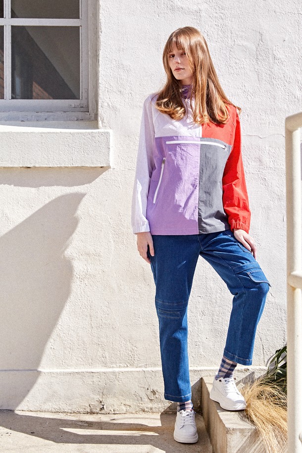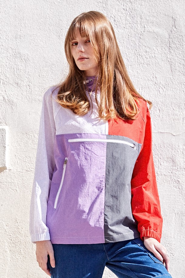 [커스텀어스] 여성 컬러배색 윈드브레이커 CXW24MWJP402 RED
