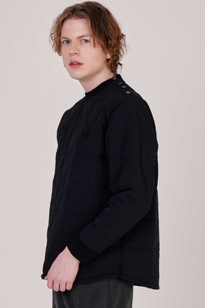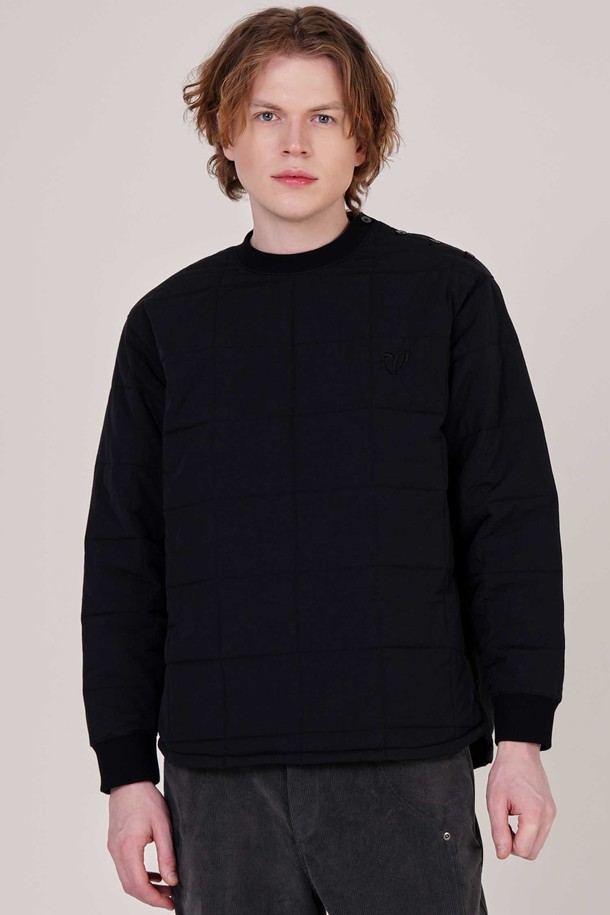 남자 4각퀼팅 로고자수 오버핏 맨투맨 CXS25WPMTC19 BLA