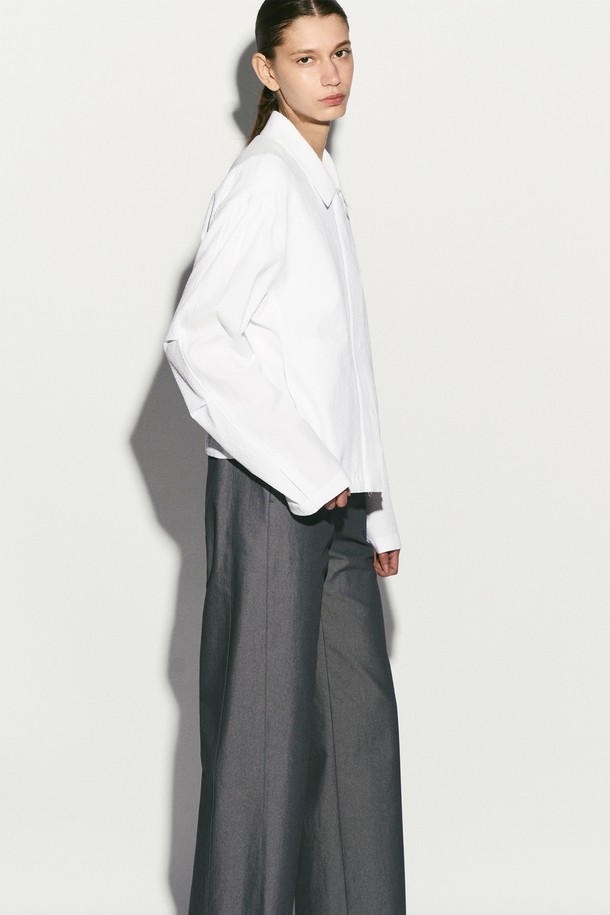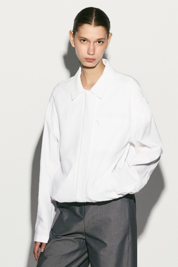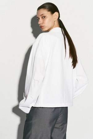 SEERSUCKER HIDDEN BUTTON JACKET WHITE