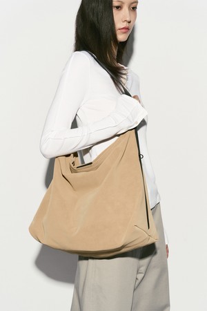 COWHIDE STRAP HOBO BAG BEIGE