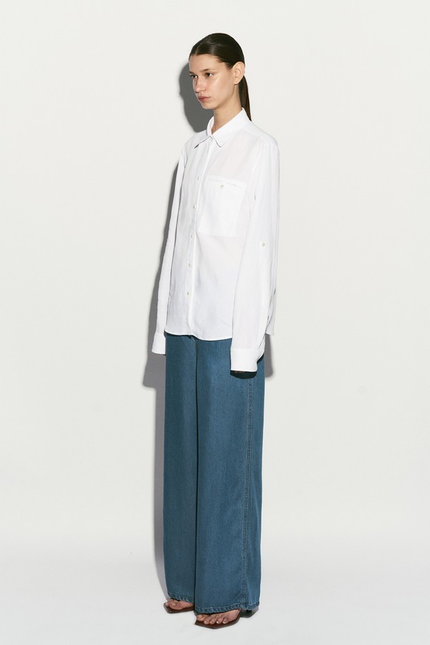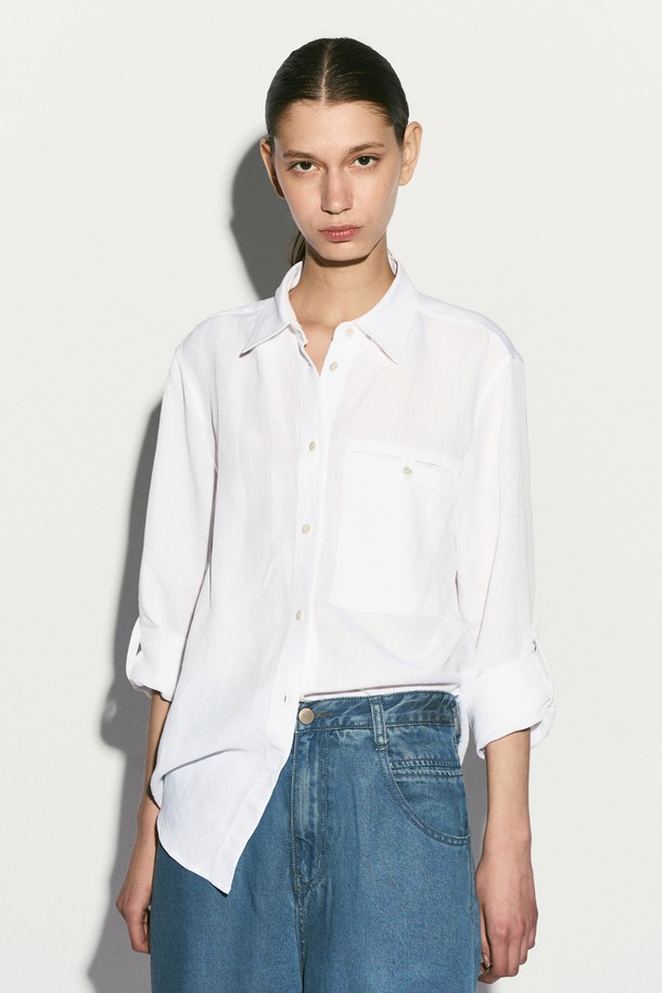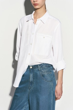 LINEN BLEND BUTTON DETAIL SHIRT