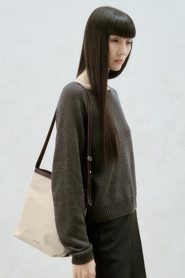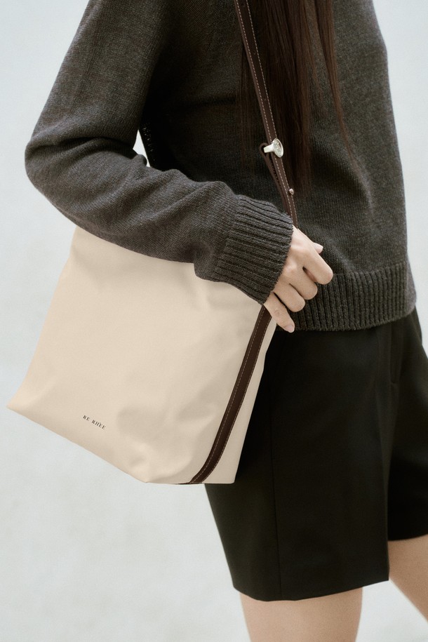 SQUARE NYLON SHOULDER BAG IVORY BEIGE