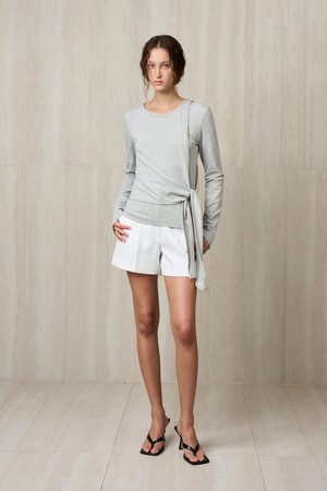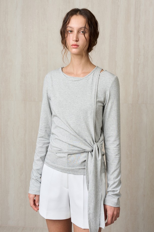 SIDE-TIE LAYERED TOP MELANGE GRAY