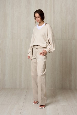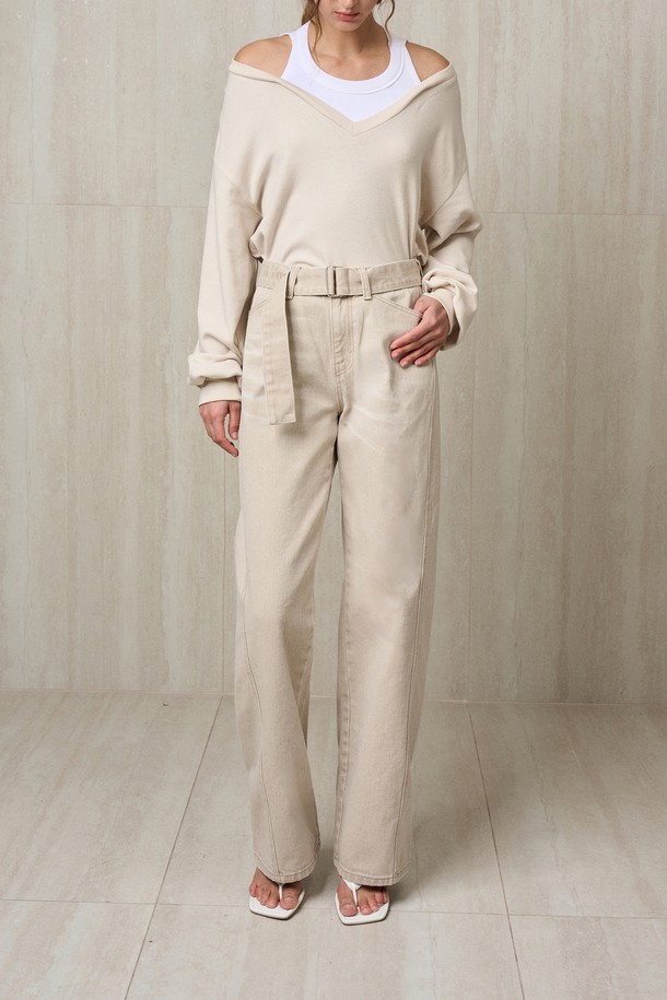 BELTED DENIM PANTS SAND