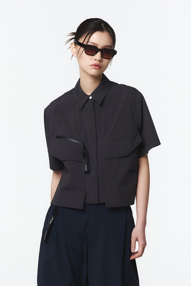 여성 오버포켓 반팔셔츠 (차콜 그레이)_5L41512