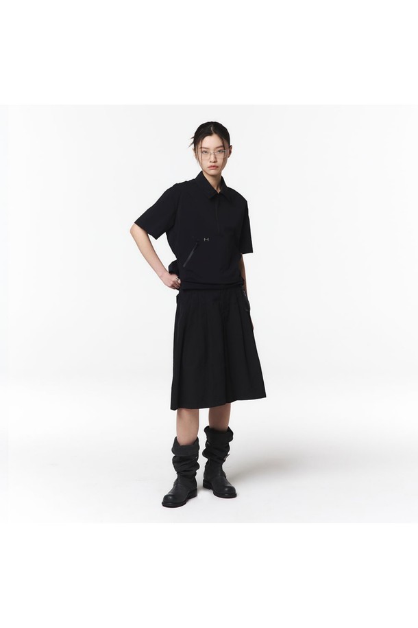 여성 5부기장 투턱 팬츠 (블랙)_5L41713