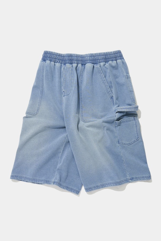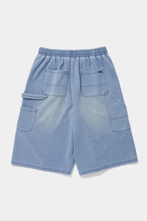 UTILITY WASHED DENIM TERRY SHORTS PANTS_LIGHT JEAN