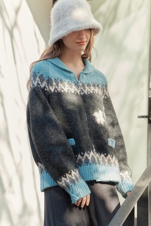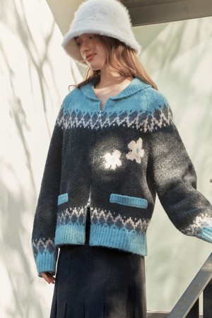 플라워 노르딕 울 가디건 / 블루